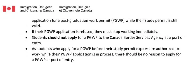 由于毕业工签申请时间较长(目前移民局官网显示116天)很多留学生都选择到边境办理毕业工签申请。可近日IRCC针对国际学生申请PGWP给出了严格的规定,值得广大留学生朋友们注意:现在通过边境申请毕业工签的方式已经行不通了。